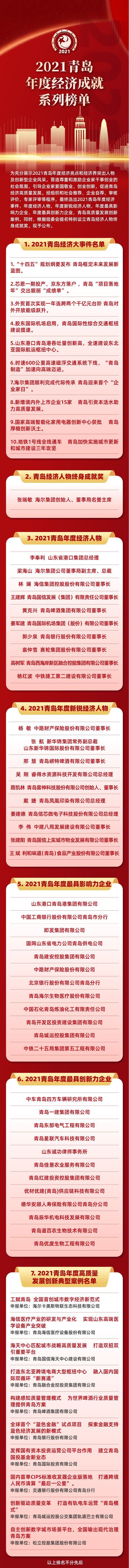 “奋斗正青春,,,,,,,创新向未来”。。。。。。6月25日,,,,,,,2021青岛年度经济成就发布仪式正式举行,,,,,,,有“青岛经济界奥斯卡”之称的2021青岛年度经济成就系列榜单正式发布,,,,,,,榜单从事件、人物、企业、案例等多个维度解读青岛2021年度经济发展成就,,,,,,,梳理青岛发展脉络,,,,,,,成为记录2021青岛经济成长的风向标。。。。。。